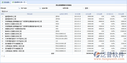 根據項目的合同支付單號,羅列出項目的直接費用支付情況,供用戶查看。