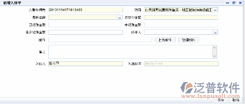 在上圖-<間接費用記賬.新增>中,選擇項目名稱、費用名稱(通過審核的費用項目),應支付金額會根據通過審核的費用項目的金額而自動填上,點擊“保存”即新增入賬單(間接費用)完成。