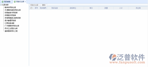 登錄項(xiàng)目管理系統(tǒng),點(diǎn)擊功能菜單,物資管理->初始化倉庫,如下圖-<初始化倉庫.瀏覽>所示。