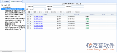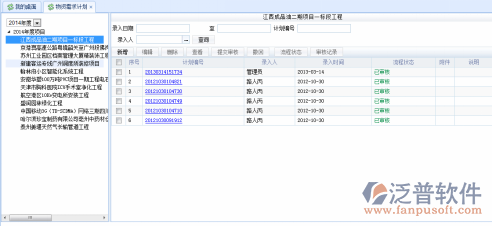 登錄項(xiàng)目管理系統(tǒng),點(diǎn)擊功能菜單,物資管理->物資采購計(jì)劃,如圖-<采購計(jì)劃.瀏覽>所示。