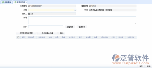 甲供材料編碼:材料入庫的材料編碼,引用“基礎(chǔ)配置”模塊的<資源庫>的材料編碼。