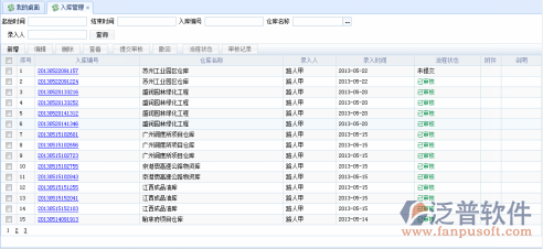 登錄項(xiàng)目管理系統(tǒng),點(diǎn)擊功能菜單,物資管理->入庫管理,如圖-<入庫管理.瀏覽>所示。