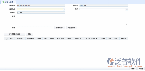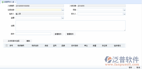 入庫管理是對(duì)采購回來的材料進(jìn)行倉庫收貨登記管理。