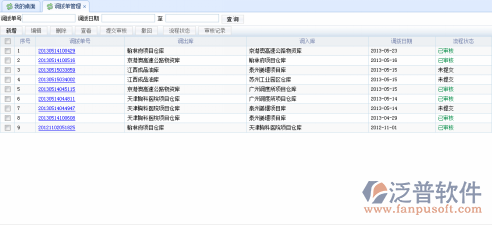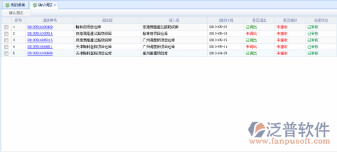 在圖-<確認(rèn)調(diào)撥.瀏覽>界面,單據(jù)以表格的形式顯示列表,如:調(diào)撥單號(hào)、撥出庫、調(diào)入庫、調(diào)撥時(shí)間、流程狀態(tài)等;注意:調(diào)撥時(shí),必須向上級(jí)部門提交審核后才可確認(rèn)調(diào)撥。