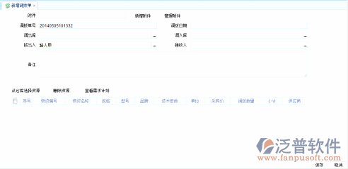 在圖-<調(diào)撥單.新增>界面中,系統(tǒng)會(huì)自動(dòng)生成此單據(jù)的“調(diào)撥單號(hào)”。“調(diào)出庫”為選擇此材料原存儲(chǔ)倉庫,“調(diào)入庫”為選擇材料準(zhǔn)備調(diào)入的倉庫。填寫調(diào)撥日期、撥出人、接受人和調(diào)撥的材料。