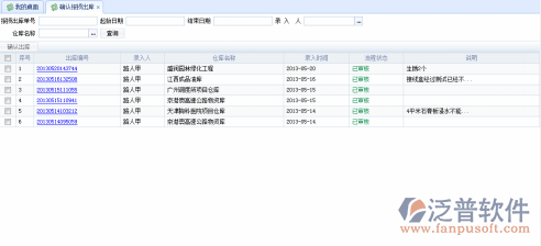 審核成功的數(shù)據(jù)會(huì)顯示在確認(rèn)出庫的列表里面。