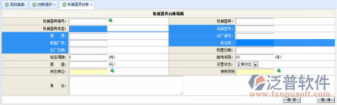 注意:機械器具編號在基礎配置下資源庫資源維護當中定義,所在單位在基礎配置相關單位中定義。