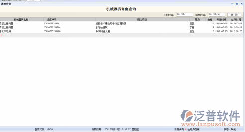 登錄項目管理系統(tǒng),點擊功能菜單,設備管理->設備調度->調度查詢,系統(tǒng)轉入調度查詢界面,系統(tǒng)瀏覽窗口如下圖: