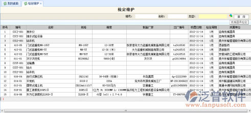 登錄項目管理系統(tǒng),點擊功能菜單,設備管理->設備檢定->檢定維護,系統(tǒng)轉入檢定維護界面,系統(tǒng)瀏覽窗口如下圖: