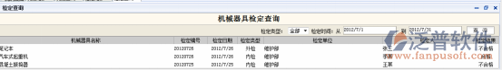 在圖-<機械器具檢定查詢>界面中,選擇查詢的類型、檢定時間,單擊“查詢”按鈕,查詢出定義的檢定設備。