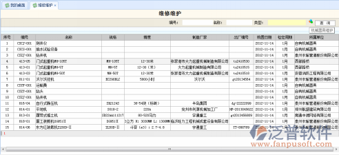 登錄項目管理系統(tǒng),點擊功能菜單,設備管理->設備維修->維修查詢,系統(tǒng)轉入維修查詢界面,系統(tǒng)瀏覽窗口如下圖: