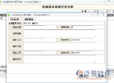 登錄項目管理系統(tǒng),點擊功能菜單,設備管理->設備維修->維修維護,系統(tǒng)轉入維修維護界面,系統(tǒng)瀏覽窗口如下圖: