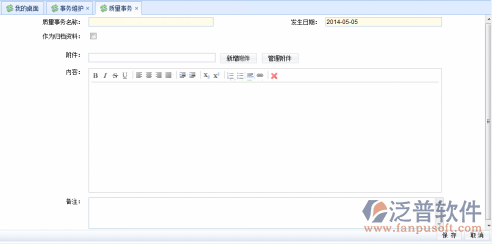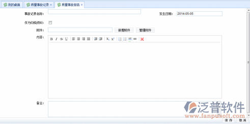 對工程上相關(guān)的質(zhì)量情況和對實際工作中發(fā)生的質(zhì)量事故和質(zhì)量事件進(jìn)行跟蹤、記錄。并上傳各種質(zhì)量記錄文件,使對質(zhì)量的控制做到有據(jù)可查;