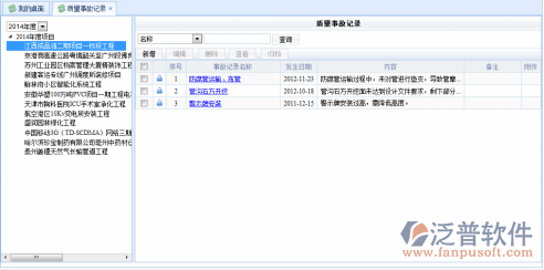 登錄項目管理系統(tǒng),點擊功能菜單,質(zhì)量管理->質(zhì)量事故報告->質(zhì)量事故記錄,系統(tǒng)轉(zhuǎn)入質(zhì)量事故信息列表,系統(tǒng)瀏覽窗口如下:
