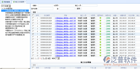 在圖-<施工日志查詢.瀏覽>一覽中,可以查看相關(guān)項(xiàng)目的詳細(xì)的施工日志內(nèi)容。