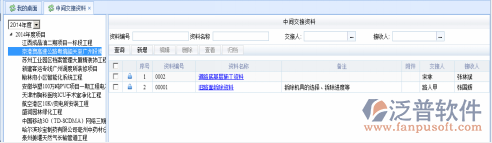 中間交接資料查詢:選擇項(xiàng)目工程樹對(duì)中間交接資料信息的查詢和查看管理;