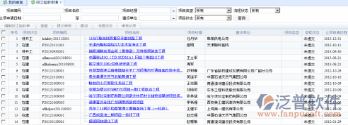 登錄項目管理系統(tǒng),點擊功能菜單,竣工管理->竣工驗收申請,系統(tǒng)轉(zhuǎn)入竣工驗收申請列表,系統(tǒng)瀏覽窗口如下: