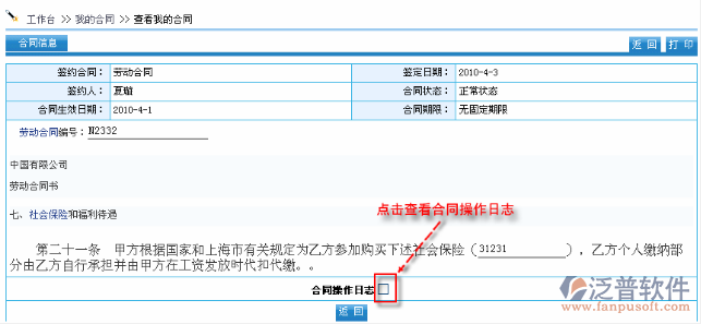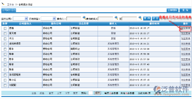 首先進入到【人力資源】—【合同系統(tǒng)】—【合同流水日志】,如圖:
