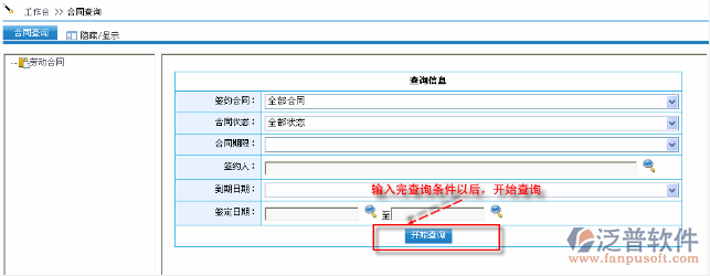 首先進入到【人力資源】—【合同系統(tǒng)】—【合同查詢】,如圖: