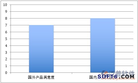 從用戶滿意度方面來(lái)說(shuō),在總分十分的滿意度打分中,國(guó)內(nèi)品牌的滿意度總體高于國(guó)外OA軟件品牌。這主要是由于OA軟件為中國(guó)土生土長(zhǎng)的軟件產(chǎn)品,國(guó)內(nèi)OA軟件在產(chǎn)品設(shè)計(jì)上有巨大的優(yōu)勢(shì),而在服務(wù)上的優(yōu)勢(shì)更使國(guó)外OA軟件廠商所必能比擬的,再加上某些國(guó)外軟件廠商一貫的傲慢,用戶對(duì)國(guó)外OA品牌的滿意度要想超過(guò)國(guó)內(nèi)OA軟件品牌就很難了。