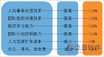 多年來,OA軟件商和很多用戶都一直在探索對(duì)OA軟件的價(jià)值作出更具體的評(píng)估。泛普軟件根據(jù)對(duì)用戶的調(diào)查,以及相關(guān)研究,認(rèn)為一個(gè)優(yōu)秀的OA軟件如果得到有效的應(yīng)用,那么它可以發(fā)揮出下面表格中的作用: