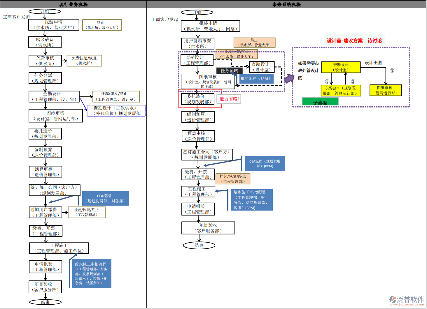 3)設(shè)計(jì)室->規(guī)劃發(fā)展部->管網(wǎng)運(yùn)行部審核確認(rèn)圖紙;