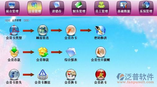 泛普公司對(duì)美容美發(fā)、瘦身健身行業(yè)進(jìn)行了深入的研究后認(rèn)為,美容美發(fā)行業(yè)如何在競(jìng)爭(zhēng)日趨激烈的環(huán)境中把企業(yè)做大做強(qiáng),其中最關(guān)鍵因素之一就是要以顧客為整個(gè)業(yè)務(wù)流程的中心,以財(cái)務(wù)為核心,對(duì)企業(yè)的信息流、資金流、物料流進(jìn)行一體化管理。