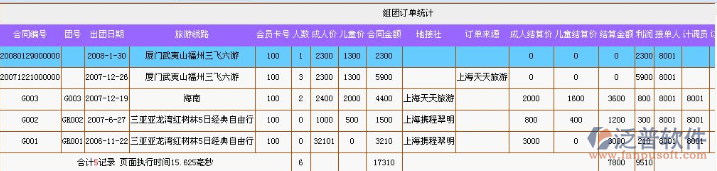 旅行社的收入及成本核算數(shù)據(jù)都可轉(zhuǎn)入財(cái)務(wù)子軟件與統(tǒng)計(jì)分析,及時(shí)了解團(tuán)隊(duì)運(yùn)作的成本,計(jì)算團(tuán)隊(duì)的毛利率等,輔助公司高級(jí)管理人員及時(shí)掌握各部門業(yè)務(wù)情況。