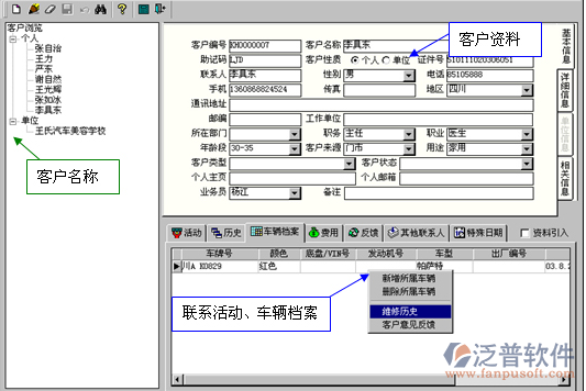 泛普軟件汽車4s店管理系統(tǒng)提供了全面管理客戶數(shù)據(jù)信息的方案,使公司對(duì)客戶的管理游刃有余。能快速的查詢出客戶的進(jìn)銷業(yè)務(wù)、快修美容業(yè)務(wù)、成交商品、付款紀(jì)錄、進(jìn)銷合同、車輛資料、客戶資料、資料收發(fā)情況,統(tǒng)計(jì)出客戶發(fā)生額、銷售毛利、維修毛利等。
