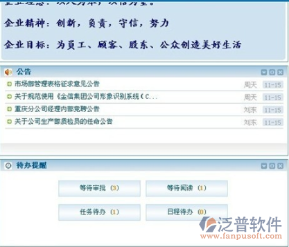 泛普軟件泛普OA系統(tǒng)協(xié)同管理軟件全面覆蓋了傳統(tǒng)辦公軟件的公文、行政審批、業(yè)務(wù)審批、綜合辦公和公告、新聞、調(diào)查、討論等公共信息,包含郵件、日程事件、計劃管理和通訊錄等應(yīng)用功能,并創(chuàng)造性地抽象和提升了人員關(guān)聯(lián)、協(xié)同關(guān)聯(lián)、項目關(guān)聯(lián)和業(yè)務(wù)系統(tǒng)整合等諸多應(yīng)用,實現(xiàn)了消息、任務(wù)、知識和人的互聯(lián),實現(xiàn)了以人為中心的信息整合和利用,是全面、完整的協(xié)同應(yīng)用解決方案和組織基于互聯(lián)網(wǎng)的工作平臺。使用泛普OA系統(tǒng)軟件,公司經(jīng)理人每天只用花一個小時就能做完一整天的工作,有更多的時間去思考企業(yè)以后發(fā)展的方向。各部門只要輕點鼠標就能銜接好各項工作。