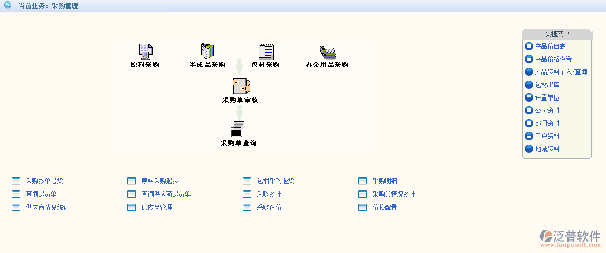 .3泛普軟件泛普OA系統(tǒng)采購管理系統(tǒng)頁面導航圖: