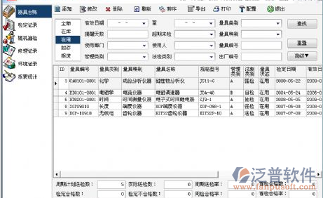 器具臺帳:計量器具管理的臺帳一般有好幾大本,有總臺帳和各分類臺帳,各類分類臺帳,按性質(zhì)不同,又有不同的分類方法,按計量類別分有長度類的,電磁類的;按使用部門分,有一車間、二車間等;按強制檢定非強制鑒定分,有屬于強制檢定的和非強制檢定的。這些賬目要一致,帳物要一致,數(shù)量不能錯,要是手工記錄工作量大,查對非常不方便,難免會出帳物不符的差錯。