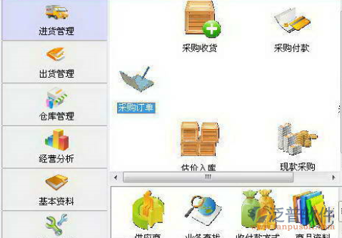 全面管理與供應(yīng)商及其它往來單位的采購入庫,采購?fù)素浨闆r,如采購開單的錄入,刪除,修改,查看,導(dǎo)出,打印,審核對單據(jù)的入賬,出賬,實時計算倉庫的貨品庫存等,可查看任何時間段的采購入庫明細(xì)和采購匯總情況,實時掌握每個住來單位的采購情況,應(yīng)付明細(xì)。