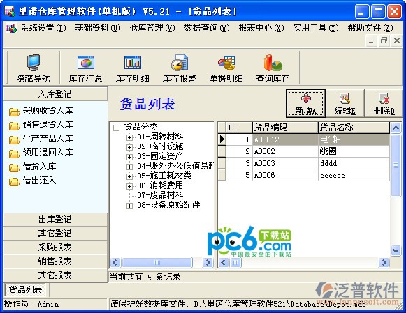 2、軟件支持入庫、出庫、退庫、調庫、借出、歸還、盤點等多項貨物操作流程;