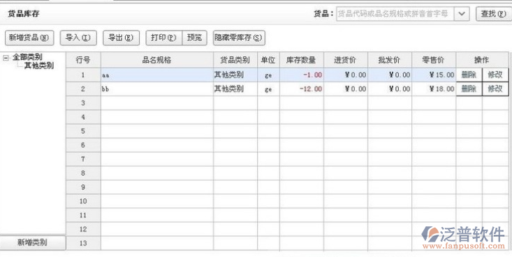 13、商品出入庫出庫價格跟蹤功能。