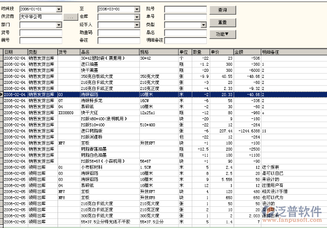 存貨明細(xì)賬:系統(tǒng)根據(jù)各類業(yè)務(wù)的發(fā)生自動產(chǎn)生標(biāo)準(zhǔn)的存貨明細(xì)帳,通過此功能,您可以查詢某貨物在某個倉庫的出入情況及價(jià)格變動情況。