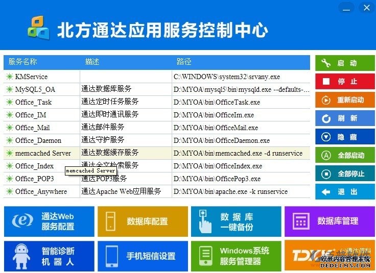 4、退出通達應(yīng)用服務(wù)控制中心和通達OA MySQL管理工具程序(需從任務(wù)管理器中確認沒有Monitor.exe和MyAdmin.exe進程),否則可能會在安裝升級程序過程中提示文件不能覆蓋。