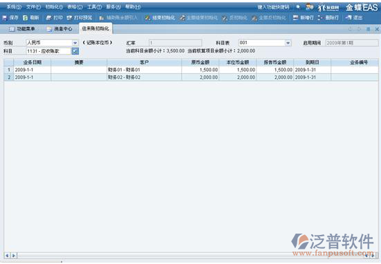 往來賬初始化時需要錄入的<業(yè)務日期>、<到期日>將直接影響到往來賬查詢,賬齡分析表的數(shù)據,輸入請慎重;
