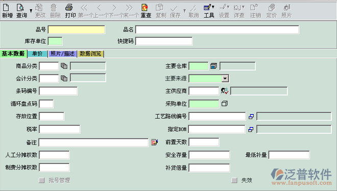 è 批號管理:當(dāng)共用參數(shù)中的批號管理勾選時,才能維護(hù)這個字段, 若有勾選,則表示此此品號是作批號管理的,于單據(jù)中要錄入批號資料。