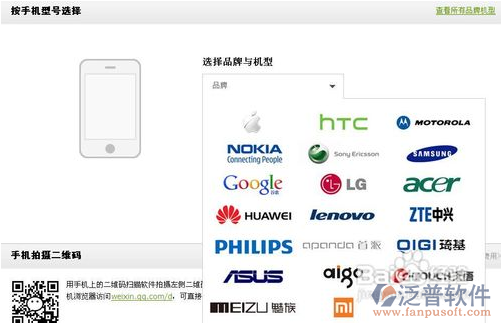 4、如果不是首頁這五款手機品牌,可以在按手機型號選擇下方進行具體的選擇