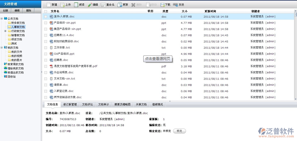 泛普軟件在線文檔管理系統(tǒng)是針對(duì)企業(yè)文檔管理中普遍存在的問(wèn)題,幫助企業(yè)進(jìn)行文檔的全生命周期管理,適合于任何體系、任何規(guī)模的企業(yè)組織。通過(guò)泛普軟件在線文檔管理系統(tǒng),企業(yè)可以高效、快捷地解決文檔的存儲(chǔ)、文檔的安全管理、文檔的查找、文檔的在線查看、文檔的協(xié)作編寫(xiě)及文檔發(fā)布控制等問(wèn)題。