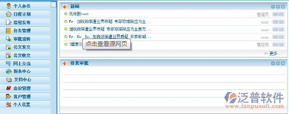 泛普軟件,OA領(lǐng)域第一品牌! 緊密集成的八大功能模塊,包括知識文檔管理、人力資源管理、客戶關(guān)系管理、項目管理、財務(wù)管理、工作流程管理、數(shù)據(jù)中心等打造協(xié)同高效的企業(yè)管理環(huán)境,突破企業(yè)人、財、物、信息、流程等各種資源之間的屏障,并將企業(yè)各部門、各分支機構(gòu)、以及企業(yè)與外部的供應(yīng)商、分銷商、客戶及其他合作伙伴等整合在一個統(tǒng)一的平臺上,使企業(yè)變成一個電子化的內(nèi)外部協(xié)同工作的組織。泛普OA系統(tǒng)還可根據(jù)用戶需求,形成各種通用解決方案和行業(yè)解決方案。