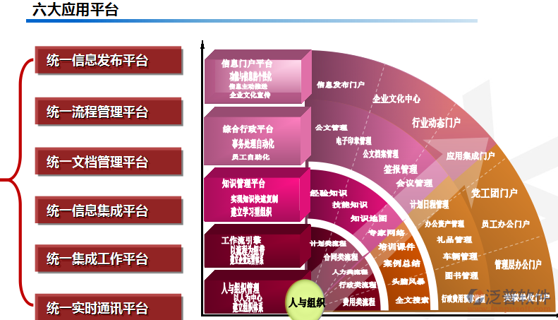 1、功能需求:解決內(nèi)部的信息發(fā)布、內(nèi)部通信、工作流程自動化、文檔管理自動化、企業(yè)管理(人事、資產(chǎn)、會議、車輛、考勤)、與業(yè)務(wù)的集成(客戶、銷售、財務(wù))、分布式辦公等核心需求;