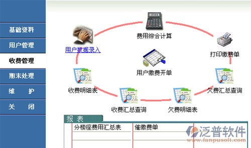 ●應(yīng)收費用匯總:指定時段的物業(yè)客戶費用統(tǒng)計表,泛普軟件泛普OA系統(tǒng)包括每個客戶的能源費、服務(wù)費、維修費、管理費、租金、停車費、清潔費等收費清單及匯總。