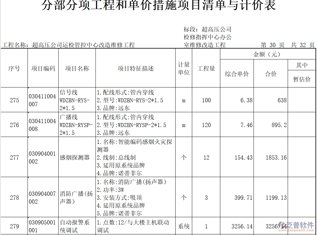 279 030905001001 自動報警系統(tǒng)調試 1.點數(shù):12/與大樓主機聯(lián)動調試 系統(tǒng) 1