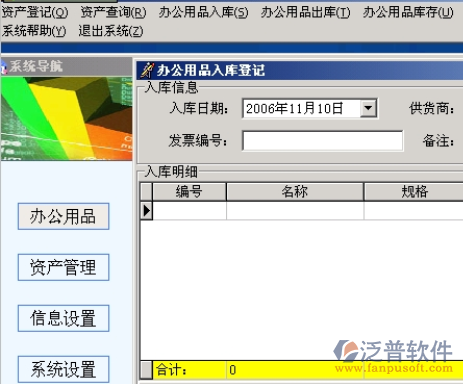 泛普軟件資產及辦公用品管理系統(tǒng)是集固定資產管理系統(tǒng)、辦公用品管理系統(tǒng)為一體的軟件,根據政府及企、事業(yè)單位中的固定資產及設備及低值易耗品(或辦公用品)的采購入庫,領用流程而開發(fā),辦公用品管理軟件特別適用于企業(yè)、機關、學校、事業(yè)單位等任何需要管理固定資產及設備的單位及各部門、各人員申請領用的模式,具有完善的入庫、出庫、領用和庫存查詢、盤點、統(tǒng)計、打印等功能。