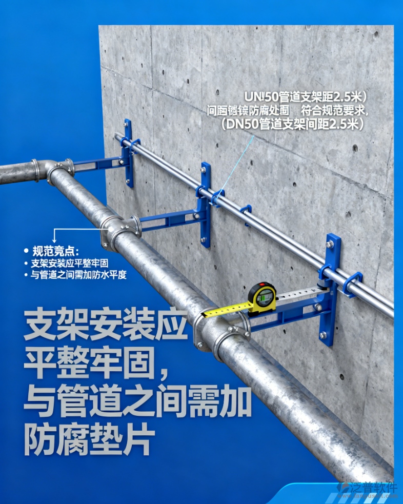 3)管道的固定卡子與管道緊密接觸,不得損傷管道表面。