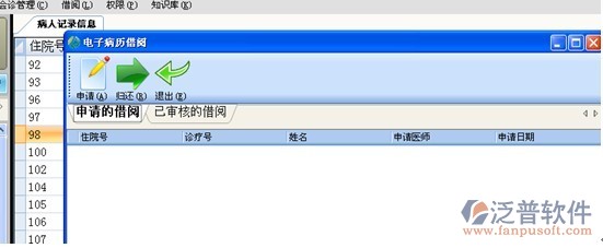 當(dāng)病人的病歷提交病案室后,醫(yī)生可以申請對病人病歷的借閱,病案室或質(zhì)控醫(yī)生核對同意后,醫(yī)生就可以查看病人的病歷信息