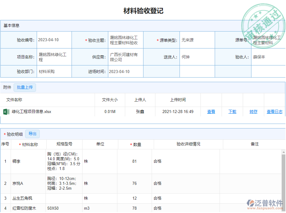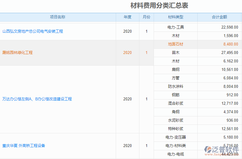 9、在園林項目的苗木材料成本管理這塊,泛普軟件主要的功能體現(xiàn)在以下這些方面: