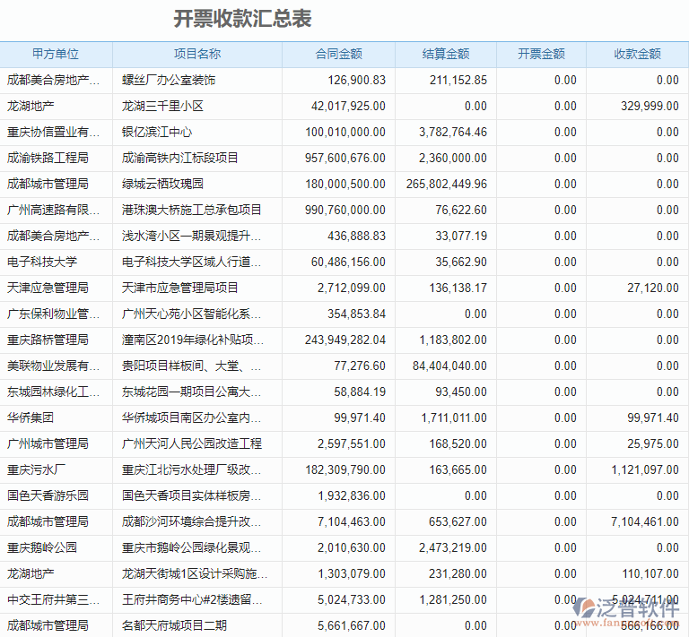 3、在園林工程企業(yè)中可能同時(shí)有多個(gè)項(xiàng)目并行,在項(xiàng)目多且往來資金多的情況下,往往項(xiàng)目的回款周期長,次數(shù)也多,因此工程企業(yè)在財(cái)務(wù)費(fèi)用上的管理難度高,資金壓力也大。一般在傳統(tǒng)的管理方式中一般是用Excel表格的方式來記錄項(xiàng)目的收付情況,這樣數(shù)據(jù)匯總不及時(shí),也不能互通,企業(yè)領(lǐng)導(dǎo)對于項(xiàng)目的收付情況也不能及時(shí)了解,及時(shí)項(xiàng)目進(jìn)度到了和對方約定該付款的時(shí)候,也可能錯(cuò)過催收的最佳時(shí)機(jī)。